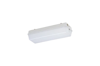 LED-Notleuchte, 10 W, 1300 lm, zentrale Versorgung (ZB), SKI, IP65, symmetrisch-breitstrahlend, 4000 K, Ra≥ 80, Ta -20 °C/+30 °C, L70>100000 h (@ Ta max), L80>70000 h (@ Ta max), L90>50000 h (@ Ta 25°C), Wanne PC satiniert, Verschluss Edelstahl (1.4301), Gehäuse Kunststoff (PC), Farbe weiß, für Lebensmittelbereiche (IFS), EAN/GTIN:4041254416854.Kleine schlagfeste LED-Feuchtraum-Wannenleuchte zum Anschluss an zentrale Sicherheitsstromversorgungssysteme mit Sicherung zum Abschalten im Fehlerfall. PC-Gehäuse, satinierte PC-Abschlusswanne, an einer Seite mit Mehrfachscharnier, gegenüberliegend unverlierbare Schraube, Silikondichtung. Lackierter Aluminiumreflektor mit Zhaga-konformem LED-Modul und EVG mit Überlast- und Kurzschlussschutz.