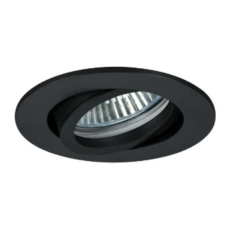 Recessed spot, GU10, black, Round. In a compact design, for installation in tool-less rapid assembly systems. Including bracket with GU10 socket for standard-compliant strain relief. Lamp holder: GU10, Mounting method: Recessed mounting, Place of installation: Ceiling-mounted, Material: Aluminium, Degree of protection: according to DIN EN 60529 IP20, Protection class: (EN 61140) II, Voltage: 230V AC 50Hz, Power: 50W, Amount of light sources / fittings: 1.0 Qty, Adjustability: Pivoted, With control gear: No, Control: Other.
