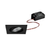 LED recessed spot set, trailing-edge phase dimmable, titanium matt, Round. In a compact design, for installation in tool-less rapid assembly systems. Set including a converter for 230-V mains voltage, trailing-edge phase dimmable, dimensions of converter: L 110 x W 50 x H 19 mm Mounting method: Recessed mounting, Place of installation: Ceiling-mounted, Material: Aluminium / Glass / Plastic, Degree of protection: according to DIN EN 60529 IP20, Protection class: (EN 61140) II, Voltage: 230V AC 50Hz, Power: 6W, Amount of light sources / fittings: 1.0 Qty, Luminous flux: 680lm, Colour temperature: 3.000 K, Beam angle: 38°, Adjustability: Pivoted, With control gear: Yes, Dimmable: Yes, Control: Trailing-edge phase.