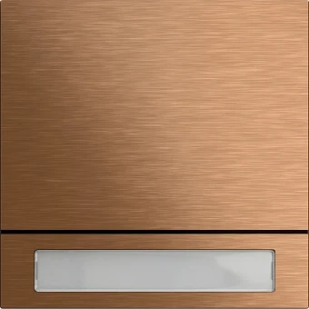 System 106 call-button module bronze 1-gang - Easy-to-use, vandal-proof, and scratch-resistant call buttons. - Function changes, e.g from 2-gang to 4-gang, can be easily implemented by replacing the buttons. - Various inscription options possible. Professional inscription by the Gira inscription service{b}www.beschriftung.gira.de{\b}.