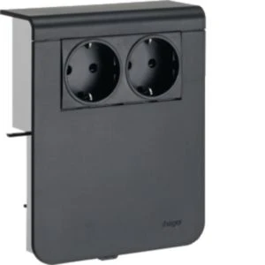 Geräteträger Steckdose 2-fach vorverdrahtet Steckklemmen zu SL 20x115mm schwarz.Geräteträger zum Elektro-Installationskanal-System Sockelleistenkanal nach DIN EN 50085-1 als Geräteeinbaukanal. Komplett vormontierte Geräteträger zum Aufrasten auf das Sockelleistenkanal-Unterteil bestehend aus Geräteträger-Unterteil mit Arretierschraube, 2 vorverdrahtete Steckdosen SCHUKO® mit erhöhtem Berührungsschutz, 3-Leiter Steckklemmen und Geräteträger-Oberteil.