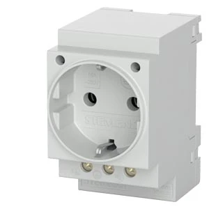Die Schuko-Steckdose 16A von Siemens dient zur Steuerung elektrischer Anlagen und ist speziell für die Hutschienen-Montage in Verteilerschränken konzipiert.