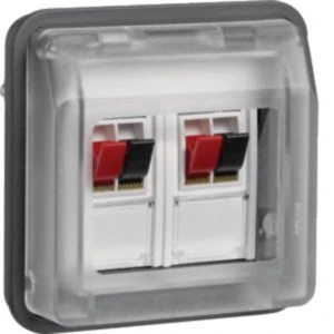 Lautsprecher-Anschlussdosen-Einsatz 2fach mit Klappdeckel W.1 grau.Lautsprecher-Anschlussdose AP/UP mit transparentem Klappdeckel, Beschriftungsfeld, Steckklemmen (beidseitig).