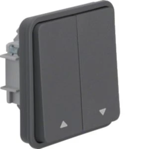 Jalousie-Serienschalter-Einsatz 1-polig, Wippe 2fach mit Pfeile W.1 grau LT.Jalousie-Serienschalter-Einsatz 1-polig mit Wippe 2-fach mit Aufdruck Symbol Pfeile AP/UP, mit mechanischer und elektrischer Verriegelung als Sperre gegen beidseitiges Einschalten, mit Steckklemmen, Einsätze erreichen nur bei Montage mit einem Gehäuse AP oder Rahmen für UP-Montage der Produktlinie W.1 den Schutzgrad IP55. Hinweise der Motorenhersteller beachten. Aufputz-Installation. Material: Kunststoff, Thermoplast, schlagfest.