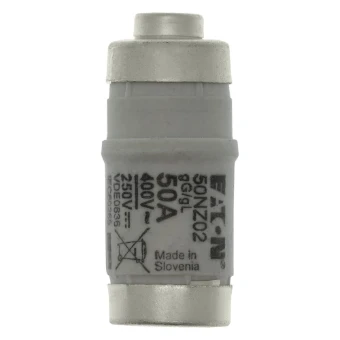Sicherung, Sicherungseinsatz, Niederspannung, 50 A, AC 400 V, D02, gR, IEC, superflink, E18, für Haushalt und allgemeine industrielle Anwendungen, IEC 60269-3, VDE 0636