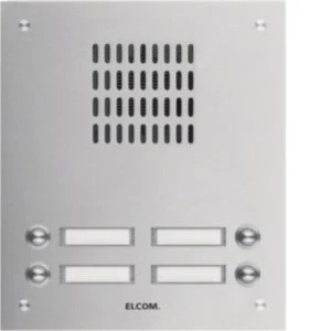 TVG-4/2 Aussenstation für Türlautsprecher 4/2 Rund-Taster UP Edelstahl ESTA.Unterputz Audio-Türstation für Sprechanlage/Intercom nach DIN EN 50486. Bestehend aus einer 2 mm dicken Frontplatte aus Edelstahl matt gebürstet mit Lochsprechgitter, runder Klingeltaster, Spezialschrauben, Namensschild (von vorn wechselbar) mit LED-Beleuchtung, Türlautsprecherhalterung mit Schnellmontage und UP-Gehäuse 55 mm Tiefe. Hinweis: Passende Elektronik und Lautsprecher erforderlich.