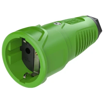 Schutzkontaktkupplung Serie TAURUS2 - Vollgummi; Farbe (Haube/Ring): grün/schwarz; Material (Haube/Kontaktträger): TPE/TPE; Schutzkontaktsystem: österr./deutsch ; 16A / 250V AC / 3p (2P+E), Schutzart: IP20