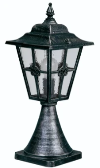 Albert-Sockelleuchte 600532 aus korrosionsbeständigem Aluminiumguß mit Kathedralglas klar. Eingerichtet für 1 x Lampe 75W, Fassung E 27. Anschlussfertig zum aufschrauben auf ein Fundament oder auf den Erdeinbausockel Typ Nr. 690011.Farbe: schwarz- IP 23 - Schutzklasse : 250 x 550 mm