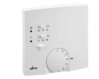 Klimaregler „Heizen/Kühlen“ mit Lüfterausgang und Heiz-/Kühlumschalter zur Ansteuerung von Fancoil-Geräten oder Teilklimaanlagen im 4-Rohrsystem für Hotel-, Wohn- und Geschäftsräume. Der KTBSB-113.500 verfügt über 3 Schalter mit denen der Regler in Betrieb genommen, die Funktion „Heizen“, „Kühlen“ oder „Lüften“ und die Lüfterstufe gewählt werden. Der Betrieb des Reglers sowie die aktive Kühlung oder Heizung werden durch Lampen angezeigt. Der Einstellbereich kann mechanisch unter dem Knopf mit den Einstellfahnen begrenzt werden. Aufputz-/Wandmontage oder mittels Adapterplatte auf UP-Dose.