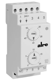 Dieser Regler für die Ansteuerung von Peltiermodulen mit Lüfter zur Klimatisierung von Schaltschränken. Der KTRRN verfügt über zwei Regelbereiche für die Funktionen Heizen und Kühlen. Im unteren Einstellbereich wird der Schaltpunkt für Heizen, im oberen Einstellbereich der Schaltpunkt für Kühlen gewählt. Die Einstellbereiche sind durch einen Bereich von 10 K getrennt.
