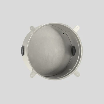 BEGA Einbaugehäuse 10487 für die Montage von Wandeinbauleuchten in Wände aus Beton oder verputztem Mauerwerk. Einbaugehäuse aus Aluminium. 2 gegenüberliegende Leitungseinführungen für Installationsrohre max. ø 30 mm. Abmessungen: Ø 245 x 135 mm. Einbauöffnung Ø 230 mm.