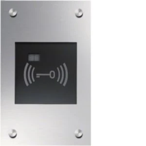 KUE-200 Transponder Leser UP Edelstahl.Zugangskontroll-System mit Unterputzgehäuse und berührungslosen Transpondern. Komplettgerät bestehend aus Unterputzgehäuse, 2 mm dicken Frontplatte aus Edelstahl matt gebürstet mit Spezialschrauben, Masterauscard, Acrylscheibe inkl. Schlüsselsymbol, 2-stelliges LED-Display zur Anzeige des Speicherplatzes, potentialfreier Schaltkontakt zur Ansteuerung eines Türöffners, Klemmen für Spannungsversorgung und für maximal 200 Transponder. Hinweis: Transponder (Anhänger oder Ausweise im Scheckkartenformat) und Netztransformator sind nicht enthalten.