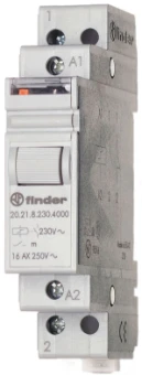 Stromstoßschalter für 35 mm-Schiene, 1 Schließer für 16 A / 250 V AC, Kontaktmaterial AgSnO2, max. Schaltleistungen bei 230 V AC: AC1 4000 VA, AC15 750 VA, Glüh- und Halogenlampen 2000 W, Leuchtstofflampen kompensiert 750 W, Leuchtstofflampen unkompensiert 1000 W, Energiesparlampen 400 W, LED (230 V AC) 400 W, NV-Halogenlampen oder LED mit EVG 400 W, NV-Halogenlampen oder LED mit KVG 800 W, Spulendaten 110 V AC, 6,5 VA, 590 Ohm, Breite 17,5 mm, Schaltfolge: an/aus, Prüftaste und mechanische Schaltstellungsanzeige, Relaisschutzart: IP 20