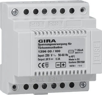 - Spannungsversorgung DC 24 V zur externen Versorgung des Gira One Servers.