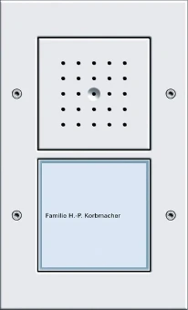 - Namensschild des Ruftasters ohne Werkzeug und ohne Rahmendemontage austauschbar.