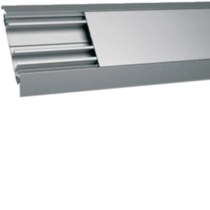 Aufbodenkanal mit 2 Kammern aus Aluminium AKA 18x125mm eloxiert.Trittfester Aufbodenkanal aus eloxiertem Aluminium, 2 Kammersystem mit Leitungsrückhalt zur getrennten Führung von Energie- oder Datenleitungen. Durch deckelhohe Trennstege sehr belastbar. Abnehmbares Oberteil gewährleistet einfaches Einlegen von Leitungen. Anbindung an Übergänge auf Rund- und Flachketten sowie Verteiler für Richtungsänderungen und Kreuzungen vorhanden. Befestigung des Kanals mittels Schrauben möglich. Doppelseitiges Klebeband im Zubehör vorhanden.