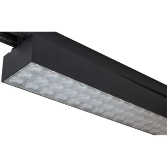 Aluminium linear 3-phase tracklight with high lumen output. Powder coating finish. Ideal to be used in high space and warehouses.