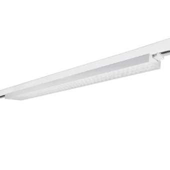 Aluminium linear 3-phase tracklight with high lumen output. Powder coating finish. Ideal to be used in high space and warehouses.