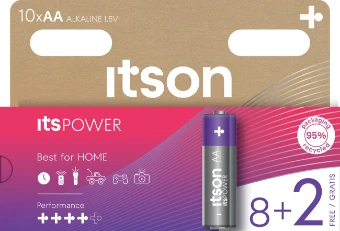 ItsPOWER Alkaline-Batterien von itson eignen sich optimal für die meisten Haushaltgeräte und überzeugen durch ein hervorragendes Preis-/Leistungsverhältnis. Uhren, Fernbedienungen, Taschenlampen und alle anderen Geräte mit geringem bis mittlerem Stromverbrauch werden durch diese Batterie ideal versorgt. Eingebaute Schutzmechanismen sorgen für einen ausgezeichneten Auslaufschutz und den Erhalt der Batterieleistung, auch nach jahrelanger Lagerung (bei Raumtemperatur). Mit nachhaltigen Batterien die Zukunft verändern - die Größen AA, AAA, C und D werden in der EU mit 100% erneuerbarer Energie hergestellt. Die kunststofffreie Verpackung rundet den geringeren ökologischen Fußabdruck aufgrund niedriger CO2-Emissionen ab. Die Mindesthalbarkeit beträgt 120 Monate.