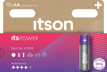 ItsPOWER Alkaline-Batterien von itson eignen sich optimal für die meisten Haushaltgeräte und überzeugen durch ein hervorragendes Preis-/Leistungsverhältnis. Uhren, Fernbedienungen, Taschenlampen und alle anderen Geräte mit geringem bis mittlerem Stromverbrauch werden durch diese Batterie ideal versorgt. Eingebaute Schutzmechanismen sorgen für einen ausgezeichneten Auslaufschutz und den Erhalt der Batterieleistung, auch nach jahrelanger Lagerung (bei Raumtemperatur). Mit nachhaltigen Batterien die Zukunft verändern - die Größen AA, AAA, C und D werden in der EU mit 100% erneuerbarer Energie hergestellt. Die kunststofffreie Verpackung rundet den geringeren ökologischen Fußabdruck aufgrund niedriger CO2-Emissionen ab. Die Mindesthalbarkeit beträgt 120 Monate.