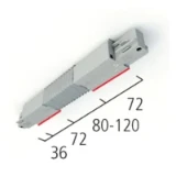 Anbau-Stromschiene (Länge: 2000 mm), geeignet für 3-Phasen-Stromschienenadapter, 5-Leiter-Schiene mit 3 getrennt schaltbaren Stromkreisen, stranggepresstes Aluminiumprofil (Verwendung auch als Schutzleiter) mit 2 eingeschobenen Strombahnen mit 4 eingebetteten Kupferleitern von je 2.5 mm² Querschnitt, bauseitige Längenanpassung durch problemloses Kürzen der Stromschiene (Rückschneiden oder Biegen der Kupferleiter nicht notwendig), einfache Montage über vorgestanzte Befestigungs-Langlöcher, max. mechanische Belastbarkeit pro Meter: 2-Punkt-Aufhängung 4 x 3 kg/m, 3-Punkt-Aufhängung 4 x 5 kg/m, direkte Deckenmontage: 3 x 10 kg/m, zugelassen für den Gebrauch im Handbereich, max. elektrische Belastung: Wechselstromnetz 3.6 kVA, Drehstromnetz 3 x 3.6 kVA = 10.8 kVA Normen: UKCA, CE, RoHS, ENEC Abmessungen (LxBxH): 2000 x 36 x 32 mm Gewicht: 1.880 kg