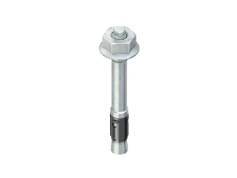 Durchsteckanker mit metrischem Anschlußgewinde M 6, einschließlich galvanisch verzinkter Flanschmutter. Zulässige Lasten für zentrischen Zug, Querlast und Schrägzug unter jedem Winkel sowie Ankerkennwerte und BauteilAbmessungen für Betonfestigkeitsklassen ≥ B 25 bzw. C 20/25 und ≤ B 55 bzw. C 50/60. Bei der Bemessung ist der gesamte Zulassungsbescheid Nr.: ETA-18/0541 zu beachten! Für den Außenbereich empfehlen wir Durchsteckanker aus Edelstahl! Zur Verwendung im Funktionserhalt bzw. für Unterdecken mit brandschutztechnischen Anforderungen (Muster-Leitungsanlagen-Richtlinie MLAR 2/2015) bitte Zusatzvorschriften beachten! Anwendungsbereich : Der Anker darf als Mehrfachbefestigung für die Verankerung leichter Deckenbekleidungen und Unterdecken nach DIN 18168, sowie für statisch vergleichbare Verankerungen bis 1 kN/m² - auch in der aus Lastspannungen erzeugten Zugzone - verwendet werden. Setzen des Durchsteckankers, dass die effektive Verankerungstiefe eingehalten wird. Die Übereinstimmung wird sichergestellt mit der Einhaltung der zulässigen Anbauteildicke (Klemmbereich). Technische Angaben Anschlußgewinde : M 6 Gesamtlänge L : 50 mm Bohrnenn-Ø : 6 mm Klemmbereich t fix : ≤ 5 mm effektive Verankerungstiefe h ef : 30 mm empfohlenes Drehmoment : 4 Nm Schlüsselweite : 10 Werkstoff : Stahl, galvanisch verzinkt nach DIN EN ISO 2081/4042, blaupassiviert Zulassungs-Nr. : ETA-18/0541 DoP NI001